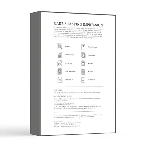 Southworth 100% Cotton Business Paper, 8.5 x 11 Inches, 20 lb, Wove finish, White, Watermarked, 500 per Box , Laser, Inkjet, copier compatible