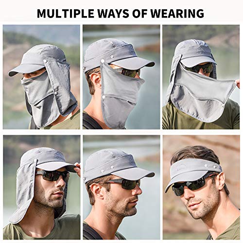 DETACHABLE DESIGN & MULTIPLE WAYS OF WEARING: The detachable face&neck cover ensure its multiple wearing ways – enable to wear it as general hat, windproof hat, neck protection hat, all round protection hat or anti-insects hat. Choose the most suitable type depend upon your protection needs.