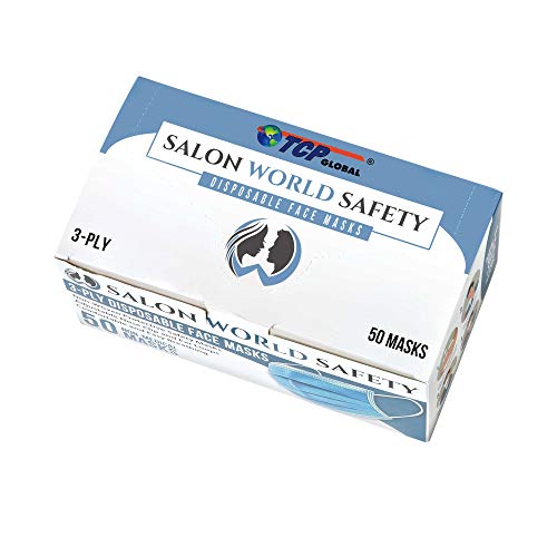 TCP Global Salon World Safety – Sealed Dispenser Box of 50 Face Masks Breathable Disposable 3-Ply Protective with Nose…