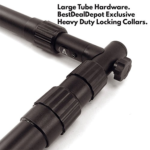 Telescopic poles for Easy Adjustment and 2 heavy duty base for added stability. Stand is made of aluminum. Black padded carrying bag is included. Design or graphic is not included.