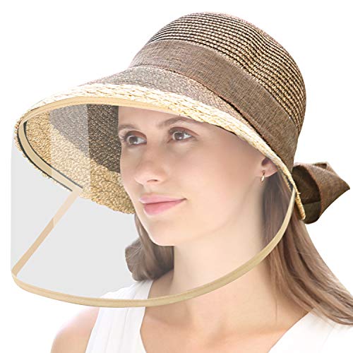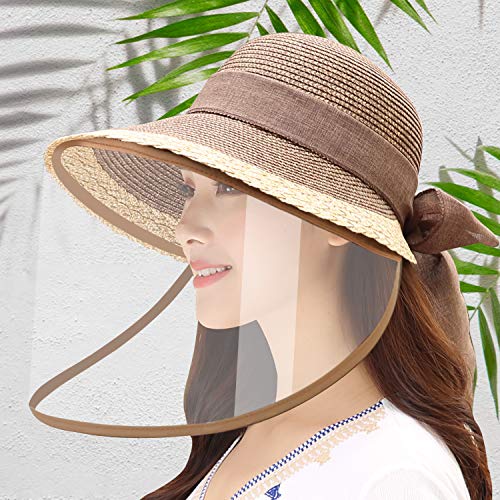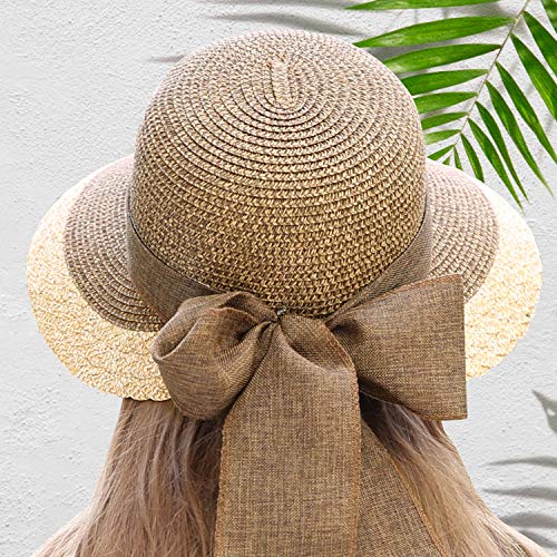 WAYCOM Removable Protective Straw Hat,Womens Beach Sun Straw Hat Wide Brim UPF50 Travel Foldable Summer Hat (Coffee…