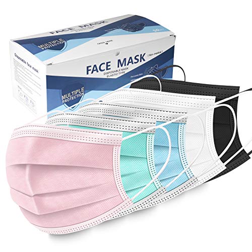 50PCS DISPOSABLE MASK: Disposable Facemasks with ear-loop fitting. Soft & Smooth fitting. Thick 3 Ply Quality Outer layer made from non woven polypropylene. Center layer is melt blown polypropylene filtration layer Inner layer is made from non woven polypropylene which makes it comfortable on your skin SIMPLE