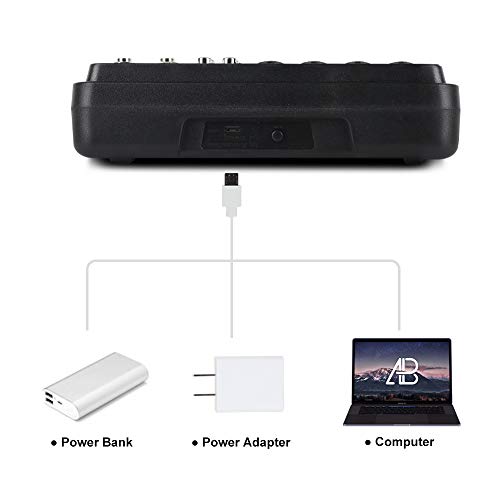 XLR plug and phone type plug can be connected what you want to use microphone or instrument,The combination of AM6 and condenser microphone is more excellent,A4 can be operated using USB bus power or a mobile battery(power Bank),NOTE:USB Power Supply:Requires current must more than 1.5A,USB power supply voltage is greater than 5V