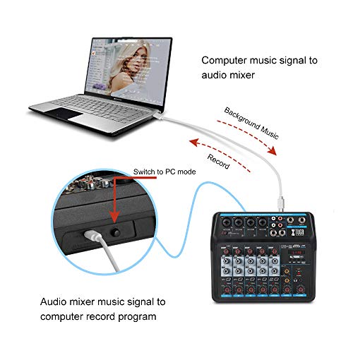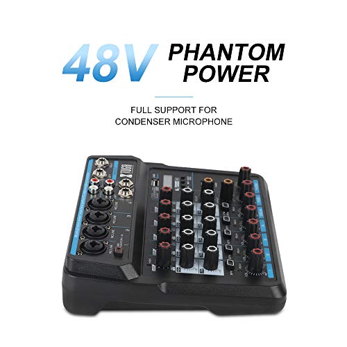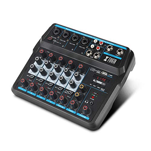 XTUGA AM6 6Channels Audio Mixer Sound Mixing Console with Bluetooth USB Record 48V Phantom Power Monitor Paths Plus…